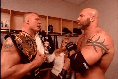 So… one last time… One last dance, WCW’s gunslinger was gonna come out one more time to take on The Beast. But this was in the era of SUPER Lesnar, of SUPLEX CITY, BITCH! Not even superman Bill Goldberg could stop Brock… could he..???