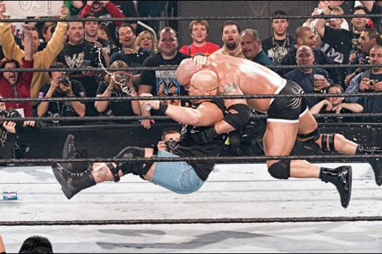 And when they FINALLY locked up, it must have been a full minute of a collar and elbow tie up, which naturally drew more boos from the New York crowd. When then had more verbals, more staring, and more locking up, to MORE BOOS, a “this match sucks” chant, followed by a side headlock by Lesnar, some shoulder tackles, a stare off, a clothesline spot that sent both men down, some stomps from Brock, a quite amazing Gorilla Press by Goldberg into a slam/spear type move, Goldberg then went for the big spear but crashed into the turnbuckle. And after Lesnar threw him into the ring steps on the outside we got some “Goldberg Sucks” chants… Once back in the ring, Lesnar hit a vertical suplex for a 2 count, them another vertical suplex, a side headlock, some long submission hold that was really boring to watch Goldberg try and counter out of, some more really boring exchanges that drew a deserved “this match sucks” chant, some more boring offence, Goldberg hit a spear for a 2 count, which drew an upset reaction towards our guest referee, Brock then hit the F5, but only got a 2 count. Lesnar was then the one unhappy with Austin. Brock charged towards Goldberg but he instead met the turnbuckle, Goldberg then hit the spear, a Jackhammer, and got the pin. AWFUL match.