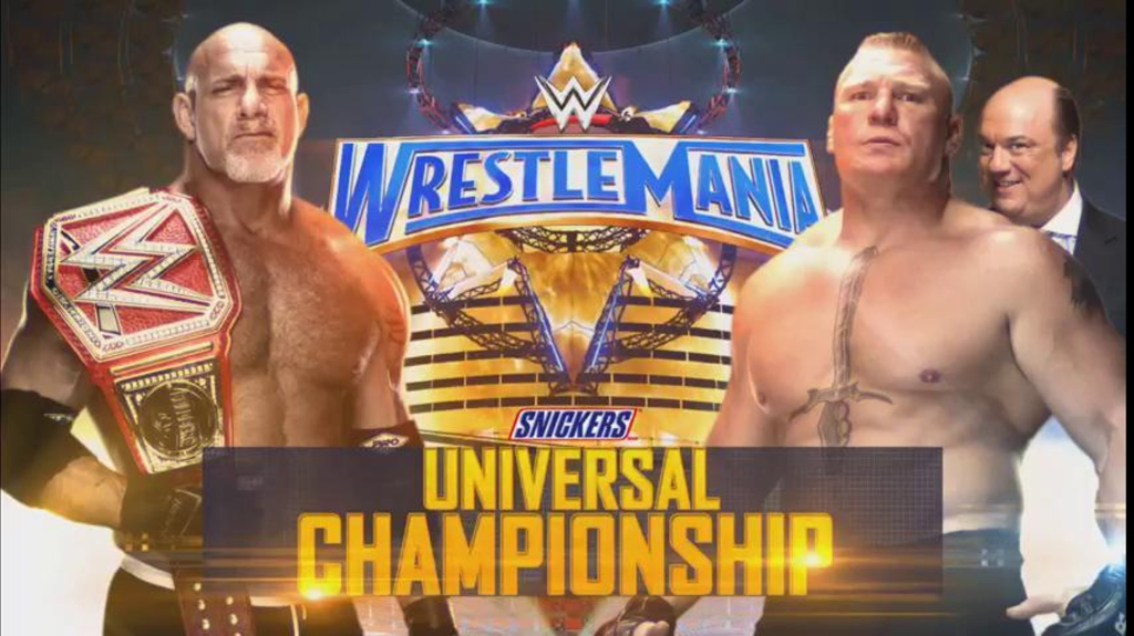 WRESLTEMANIA 33 (APRIL 2ND 2017, ORLANDO, FLORIDA) - Brock Lesnar (With Paul Heyman) defeated Goldberg (C) to become the NEW Universal Champion