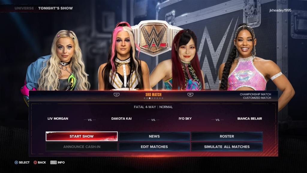 Bianca Belair (C) defeated Dakota Kai & Iyo Sky & Liv Morgan in a fatal 4 way match to retain the WWE Women’s Championship
