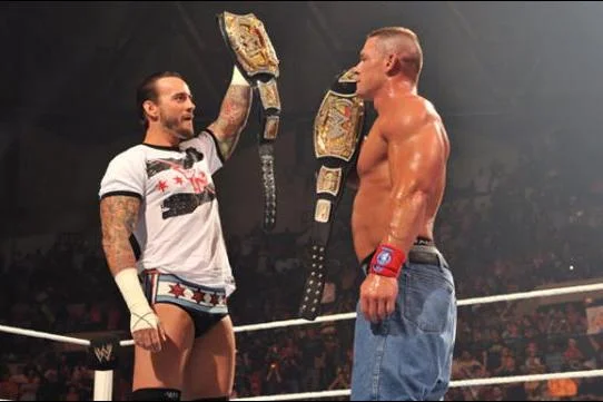 The next week on Raw, John Laurinaitis boldly claims that HE has OFFERED a deal that COULD see CM PUNK return to WWE TONIGHT to face Rey Mysterio for THE WWE Championship… He says that all CM Punk has to do is come back to WWE… publicly apologise to Laurinaitis, hand over and abandon his legitimacy claims to ‘his’ WWE title belt, and pay a fine of ONE MILLION DOLLARS… Naturally, Punk doesn’t show up to accept the offer, and instead Laurinaitis claims he ‘doesn’t want to disappoint the fans’ and so ensures there is STILL a WWE title match tonight… with Mysterio’s opponent being… The Miz… But before the match starts, John Cena comes out, telling Laurinaitis to stop being an ass and to treat the fans with some respect, he instead suggests that HE should be the one to face Mysterio tonight, and to put on a match that is worthy of Rey Mysterio and of the WWE title. Eventually Cena beats Miz to earn the title match with Rey in the main event. And then… John Cena wins the WWE title from Rey.