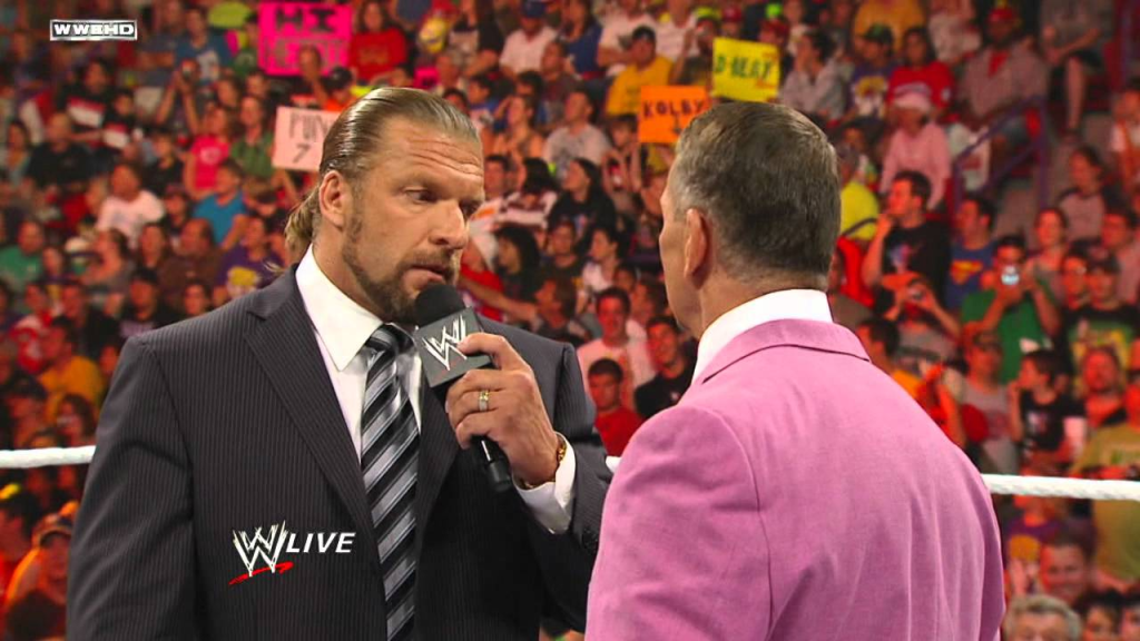 The next night on Raw, Triple H opens the show. He says sometimes in life, you have to do things you don’t like, but you do so for the greater good. You do so because it’s the right thing to do, and I will ALWAYS do what is best for the WWE, what is BEST FOR BUSINESS. He goes on to say how it wasn’t about Alberto Del Rio being the WWE Champion, but more that CM Punk wasn’t. And naturally… this brings out Punk. They go back and forth on the mic, before a pull-apart brawl ensues.